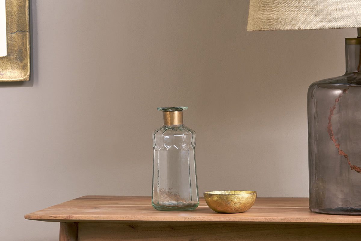 Chara Hammered Bottle – Clear Glass & Antique Brass – Large 39 x 17cm (dia)