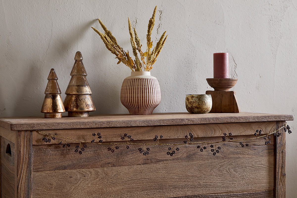 Elegant yet practical, the Tanu Mango Wood Beaded Garland is a perfect addition to interiors that prize both design and function. Carefully created using traditional techniques, it reflects a commitment to sustainable craftsmanship and refined living.